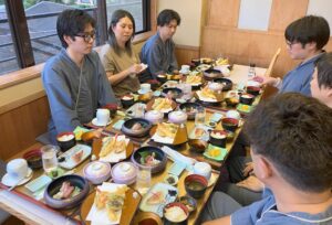 お昼には全員でバーベキューを行いました。自然に囲まれた環境での食事は、日常ではなかなか味わえない特別な体験となりました。非日常感に包まれながらいただく食事は格別で、心地よい雰囲気を演出してくれ、参加した全員が満足する時間を過ごすことができました。
